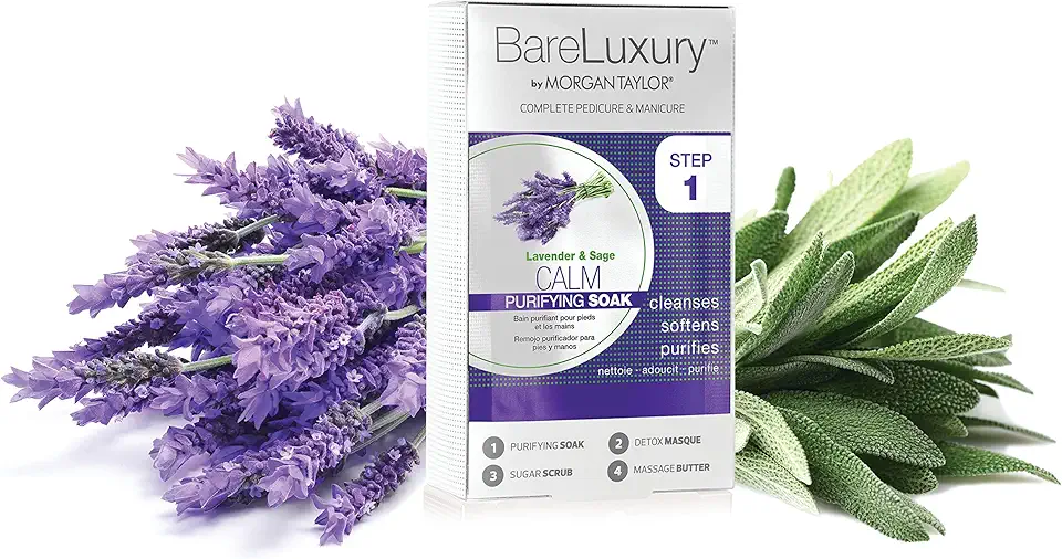 The BareLuxury 4-Step Pedicure Pack is pure luxury at home. I do my own pedicures and this set makes it feel like a real spa day. The soak softens calluses, the masque hydrates deeply, the scrub exfoliates gently, and the massage butter leaves my feet so soft and smooth. The lavender & sage scent is calming and not overpowering—my husband even loves when I use it because the house smells amazing. My feet stay soft for days, and the products last a long time. I’ve repurchased twice already—best pedicure kit I’ve ever used!